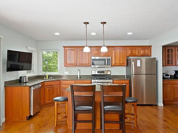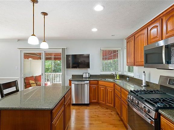 Beautiful, luxury townhome located in the desirable Village of Pine. This wonderful end unit is completed with a four foot extension and numerous upgrades. The stunning, gourmet kitchen features cherry cabinetry, granite counter tops, a butler's pantry and wide-planked hardwood flooring. The spacious living room is bathed in natural light. The inviting master bedroom suite is highlighted by vaulted ceilings and a private bath with dual vanities, a jetted bathtub, a tiled shower and ceramic flooring.