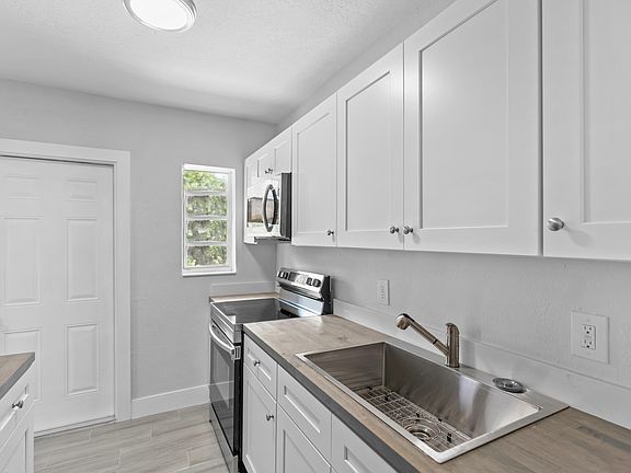 Did someone say NEW ROOF? Yes WE did! Brand new fully permitted roof on this lovely AFFORDABLE redone home in the heart of Palm Beach County! The house is nestled on a tree lined street and is walking distance to the beautiful waterfront. This home features a fenced in yard and circular driveway with an adorable tiled front porch. The whole house is tiled with wood plank tile and features blinds on all windows, fans in the rooms, not to mention BRAND NEW appliances and white shaker cabinets with butcher block counters! The laundry is inside the home for added convenience. Air conditioner and hot water heater are both manufactured in 2018!