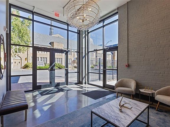 Stunning south-facing residence in downtown Winston-Salem's Twin City Lofts -- a pet-friendly building adjacent to Winston Square Park! Elegant art gallery-style entrance hall leads to a stunning interior with high ceilings and an open floor plan; Massive great room with walls of glass create a sun-drenched living space, complete with electronically operated shades for perfect control of light; Quartz/stainless steel kitchen with island and pantry; Luxurious primary bedroom suite includes walk-in closet, premium bathroom with modern finishes and relaxing bedroom with electric shades; Guest bedroom suite includes a private bathroom; Plenty of closets/storage and spacious laundry room; Convenient half-bath for guests; Assigned parking space included within the building's gated garage; Wonderful rooftop sky lounge for building residents -- including grills, TV, fireplace and seating areas; FURNISHINGS ARE AVAILABLE FOR PURCHASE -- perfect for those looking for an easy "turn key" scenario!