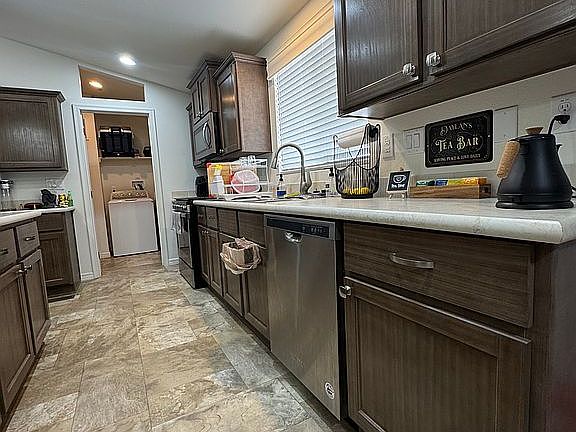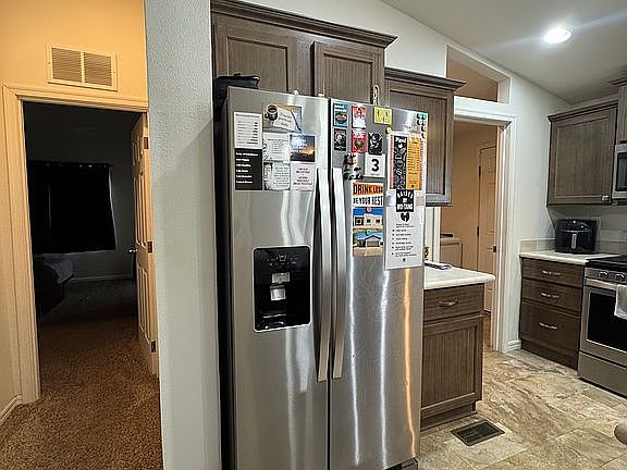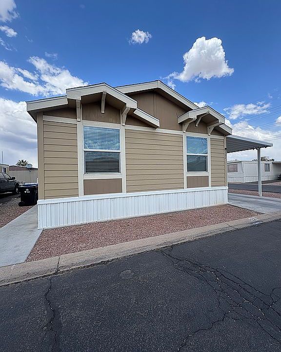 Manufactured home in family community Chaparral Village! Large primary bedroom with double sink vanity. This home boasts home ownership and has laminate flooring, vaulted ceilings, stainless steel appliances, and a new fence! Financing is available! Call to tour today!