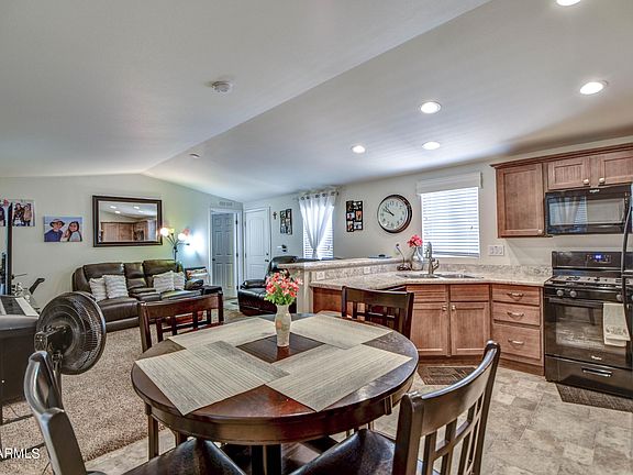 Cozy mobile home with spacious sized bedrooms and living room area! This move-in ready home offers vaulted ceilings, updated kitchen and no maintenance landscaping! The kitchen has breakfast bar, stainless steel double sink, black appliances including gas stove and plenty of cabinet storage! Located in the heart of Tempe just minutes from the I-10, US-60, 101, Kiwanis park, shopping, restaurants, and more. Ideal starter home if you're a first time home buyer or just wanting to downsize. Don't miss out on seeing this home today! Lease Fee includes, Water, Sewer & Trash.