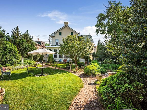 “Green Gables.” This carpenter gothic style 1864 brick Victorian gem is a world unto itself. Stunningly well cared for with a “secret garden,” a custom fenced, formal garden with gazebo, garden porch, and patio area. The welcoming front porch has the signature Victorian gingerbread and is shaded from the street by 9foot boxwoods, making it a wonderful place to relax and watch the world go by. Enter through the etched glass double front doors. The stunning center-hall style home features the soaring staircase ahead, with a huge dining room with bay window and original details to the left. On the right, two living areas (formal and family) can be separated by large functioning pocket doors. The front room has crown molding, built-in shelving for books, a bay window, and a wood burning fireplace for cozy winter evenings. The rear living space has crown molding, and more built-in shelving. The back of this home is also functional and gracious, with an updated kitchen, a butler's pantry with a sink, 2nd fridge, storage closets and cabinets, half bath, and a 4-season porch with its own mini split heating and air system- all walking out to the private fenced garden, patio area and gazebo. Upstairs, the primary bedroom features lovely woodwork and a modern ensuite bath. The other 3 bedrooms share a hall bath with clawfoot tub/shower, and another full bath with a soaking tub and separate tiled shower. The laundry room is located on the bedroom level for added convenience. The unfinished attic provides extra space for storage or to create additional living area. A detached 2-car garage with attached workshop provides off-street parking and is accessible through the back garden. There are so many charming details in this home to explore and discover! All within walking distance to downtown Martinsburg’s 12+ restaurants and unique shops.