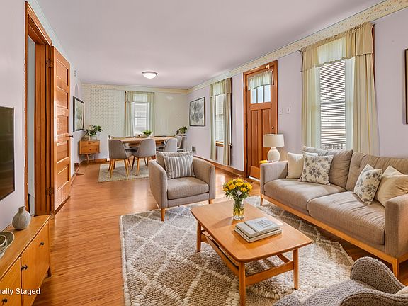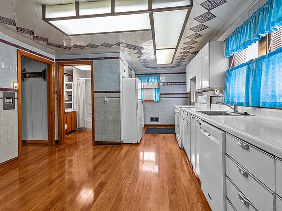 Great little affordable house waiting for a new owner. This bungalow is situated on a super size lot. Nostalgic interior makes way for a retro style. 3 bedrooms, 1 bath, hardwood floors, full basement. 2 story garage offers a rear and upper work space. Newer siding and roof. Simply a quaint well maintained home. Start your home ownership here. SOLD AS IS