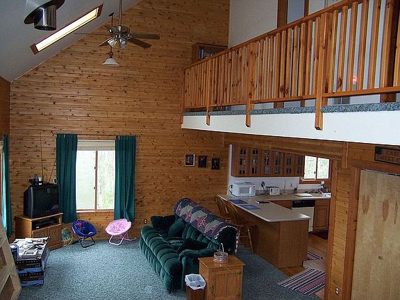 Two story plus basement. Hill top, complete Hubbard lake view from front room and 32 Foot long deck