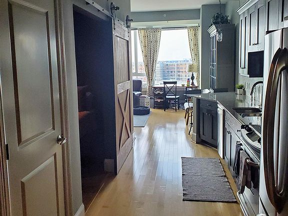 Light filled luxury condo, well appointed with upgrades that you won't find in an apartment! Fully tiled kitchen backsplash and tiled bathroom, custom wood sliding door, built-in bookshelves, and in-wall surround sound speakers. Enjoy the rooftop pool with grills, club room, and fitness center overlooking downtown. Secure building access with bellman, 1 secure covered parking spot included and 1 additional spot available for rent, 5'x4' on-site storage unit, google or AT&T fiber ready. One block from the upcoming Publix and so much more! Tenant is only responsible for electric bill and cable/internet