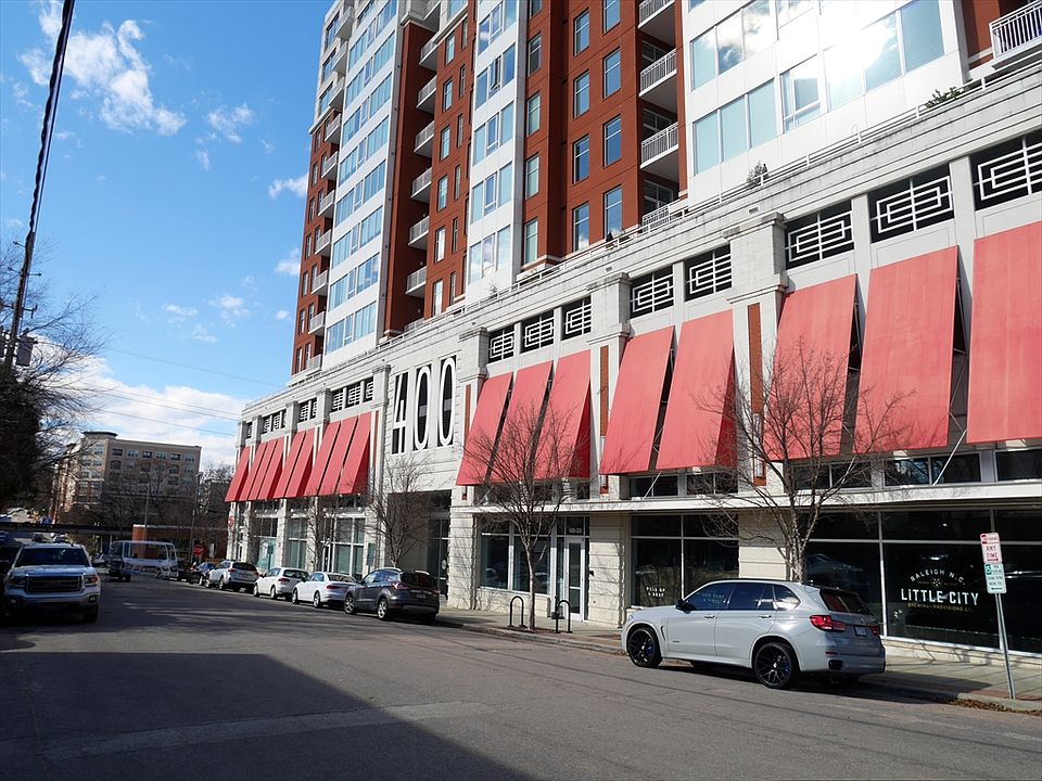 Fantastic one bedroom unit on the 14th floor in the heart of Downtown Raleigh!! Open concept floorplan with all NEW wood laminate floor living/dining/kitchen. Kitchen features granite countertops, stainless steal appliances, under cabinet lighting, lots of cupboards for storage & an eat at breakfast bar. Spacious Master Suite with a HUGE walk in closet! Bathroom with oversized glass and tiel shower and vanity with lots counters space, storage nook next to shower. Building amenities: Secured building entry, garage parking space, rooftop pool, clubroom and fitness center! Steps to Glenwood South restaurants, bars & much more!!
