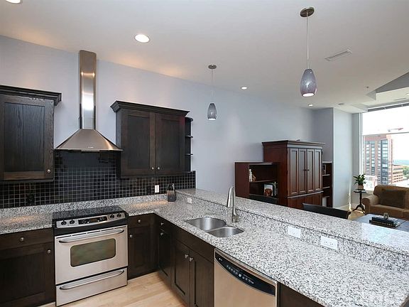 PENTHOUSE UNIT WITH SPECTACULAR DOWNTOWN VIEWS IN AN AMENITY-FILLED CONDO BUILDING. JUST STEPS TO SMOKEY HOLLOW, SEABOARD STATION AND ALL THAT DOWNTOWN HAS TO OFFER. This 16th floor South facing condominium includes 11+ foot ceilings, open floor plan, fresh paint, 3M UV window film, 2019 water heater and a master bedroom closet with custom cabinetry. Building amenities include a roof top pool, full service gym, and front desk concierge. Owner amenities include covered parking space and storage unit.