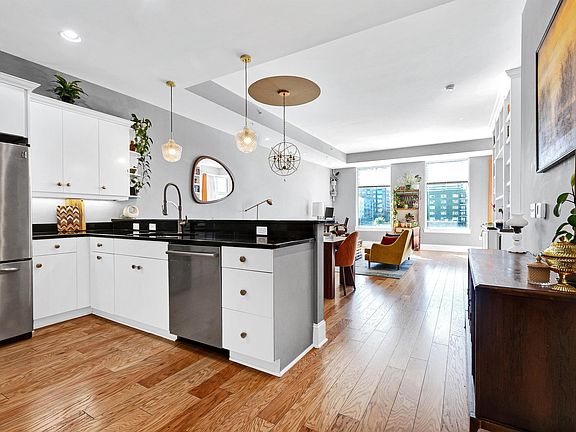 Urban Luxury Living at its Finest Nestled in the Heart of DTR! This South Facing Condo Boasts an Array of Custom Features & Modern Amenities! The Open Concept Floor Plan Lives Large with 10' Ceilings & Tall Windows that Fill the Space with Natural Light. The Kitchen Contains SS Appliances, Tile Backsplash & Granite Countertops with Bar Top Seating. A Spacious Living Room Features a Custom Built Floor-to-Ceiling Entertainment Center & Bookshelves. Maximizing Space & Functionality, the Second Bedroom Offers a Custom Murphy Bed with Integrated Shelving to Ensure You Have Room to Accommodate Guests or Transform the Space into a Home Office with Ease. Primary Suite Includes a Large Walk-In Closet & Updated Bathroom. Top it off with a Private Balcony that Overlooks the City! Enjoy Exclusive Access to the Rooftop Pool, Fitness Center & Clubhouse Area. Also Included is a New Building Access Security System, 2 Parking Spots & Storage Unit. Located Right Above Little City Brewing & Neighboring the Newly Built Smokey Hollow District. Needless to Say Dining, Shopping & Entertainment Opportunities are Abundant!