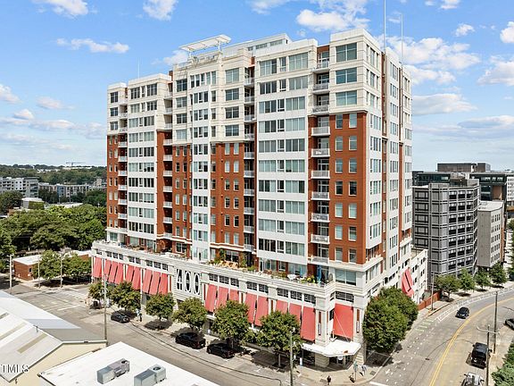 Discover urban sophistication with this exquisite 2-bedroom, 2-bath condo, perfectly positioned in the vibrant heart of Downtown Raleigh. This corner unit is a rare find, offering an unparalleled living experience with its blend of modern updates and luxurious amenities, all within walking distance to an array of shops, restaurants, bars, and even a grocery store. Step inside to be greeted by the contemporary elegance of updated LVP flooring that flows seamlessly throughout the open-concept living space. The freshly painted interior provides a crisp, clean backdrop, further enhanced by large windows in both bedrooms, flooding the space with natural light. Custom electric blinds on all windows offer effortless control over light and privacy. The kitchen is a chef's dream, featuring granite countertops, under-cabinet lighting, soft-close drawers and cabinets, and brand-new appliances including a stainless steel refrigerator, dishwasher, and a wine refrigerator. The attention to detail continues with a new washer and dryer, a new hot water heater, and updated disposal, ensuring a move-in ready home with modern conveniences. Retreat to the owner's suite to find a luxurious large soaking tub, perfect for unwinding after a long day. Both bedrooms boast ceiling fans for added comfort, and California closets designed to maximize storage. The condo also includes two prime covered parking spaces located next to the freight elevator and a large dedicated storage cage in the basement, providing ample storage solutions. Beyond the unit, the building offers an array of premium amenities designed to elevate your lifestyle. Enjoy peace of mind with secured entry, and take advantage of the rooftop pool and gym, both offering stunning skyline views. These shared spaces provide the perfect setting for relaxation and fitness, all within the convenience of your own building. This east-facing unit offers breathtaking skyline and Midtown views, capturing the beauty of morning light and the vibrant cityscape. Don't miss the opportunity to own this beautifully updated condo in one of Raleigh's most desirable locations.