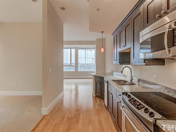 Gorgeous condo in the heart of downtown Raleigh, walkable to restaurants & nightlife! Desirable West Condominium building w/incredible amenities: doorman, pool, fitness room, rooftop deck & more! Beautiful kitchen has granite countertops, stainless steel & abundant cabinet space. Huge family room w/hardwood floors & wall of windows for endless natural sunlight & amazing views! Luxurious tiled bath w/granite vanity & walk-in shower. In-unit stackable laundry. 1 assigned parking space in secured garage!