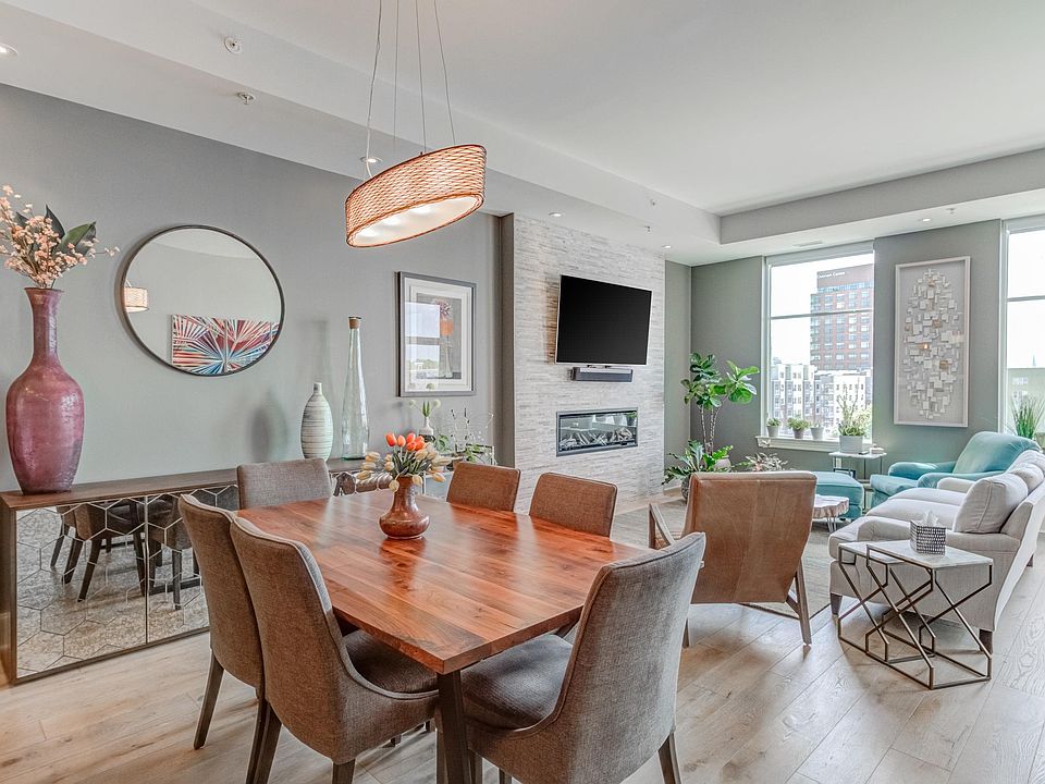 STUNNING 9th Floor, 2 bed/2 bath condo in DOWNTOWN Raleigh w/amazing views! NEW wide plank flooring! Gorgeous white kitchen cabinetry! Granite counter tops, SS appliances! Oversized windows! INCREDIBLE natural light floods the unit! 10ft ceilings! Baths have tiled floors & granite counters! Spacious master bedroom with incredible customized walk in closet! Large covered balcony! Secured lobby entry! 2 covered parking spaces convey! Rooftop pool! Community Rm & GYM! Additional storage space in basement!