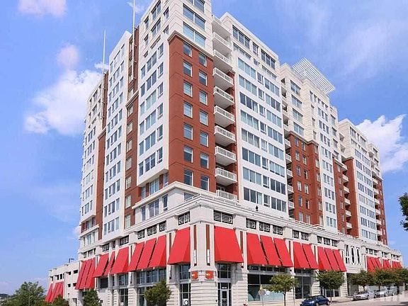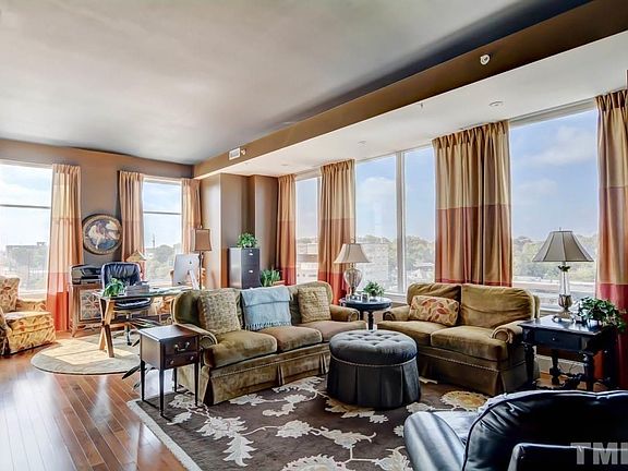 Fantastic 3 bedroom corner condo with SW facing views in West! 10+ ft ceilings. Hardwoods throughout most of unit. Updated fixtures. Power shades. Spacious living rm boasts fantastic Downtown Raleigh views! Formal dining. Gourmet kitchen offers granite tops, s/s appliances, custom cabs & tile b-splash. Generous master includes granite top dual vanity, over sized tile shower & large WIC. Google fiber available. 2 prime covered parking spots. Storage unit. Rooftop pool. Fitness center. Bellman. Club room.