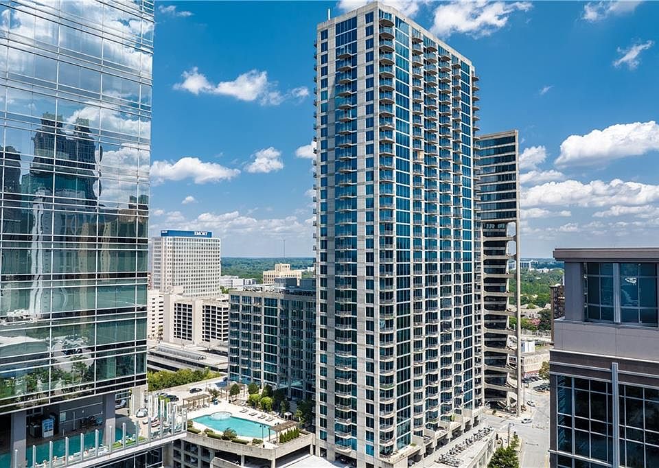 Back on market at no fault to seller. Amazing studio condo featuring new hardwood floors, new carpet, floor-to-ceiling windows, and a balcony with city views! Offering the best in walkability to close-by restaurants, shops, Mercedes-Benz Stadium, Ga Aquarium, CNN Center, World of Coca-Cola, Atlanta Children’s Museum, and right around the corner from Civic Center Marta Station. Don't miss this opportunity to live right next to the upcoming “Stitch” project. Amenity-rich property including pool, sundeck, private clubroom, fitness center, media room, meeting/conference room, business center, on-site property management, and 24-hour concierge. The building also has a bar, restaurant, and Marriott hotel, offering special guest rates for residents. Truly the ultimate in condo living and convenience to all Atlanta has to offer. Includes one covered parking space with secured key fob access. Nearby MARTA takes you directly to Hartsfield Int'l airport, a host of upscale shopping (Lenox Square, Phipps Plaza), and other destinations outside 1-285. Easy driving access to I-75/85, GA-400, and I-20! WOW! Come and see! Some pictures have been virtually staged. Find out RIGHT NOW how you may qualify for UP TO 2% below-market interest rates.