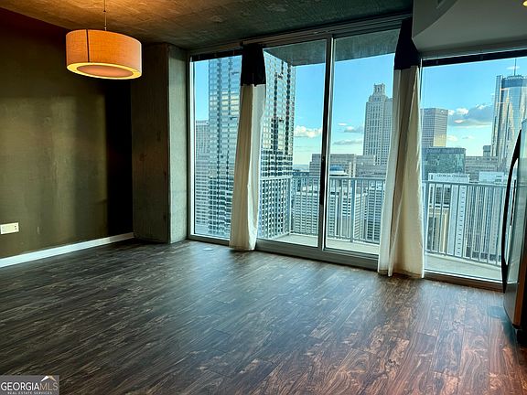 Fantastic downtown condo on the 37th floor with stellar views! The entire unit was just renovated with new hardwood floors. The interior is also outfitted with stainless steel appliances and a washer/dryer. Enjoy true city-living with private/gated parking with an assigned parking space. Don't miss the serene balcony - perfect for morning coffee with a breathtaking skyline view. e. Monthly flat rate fee of $150 for utilities includes electric, water, sewer, and trash. This prestigious condo building's amenities include a 24-hour concierge, fitness center, rooftop pool, clubroom, business center, and valet parking. The concierge is on-site daily to greet your needs. This gem won't last long! Copyright Georgia MLS. All rights reserved. Information is deemed reliable but not guaranteed.