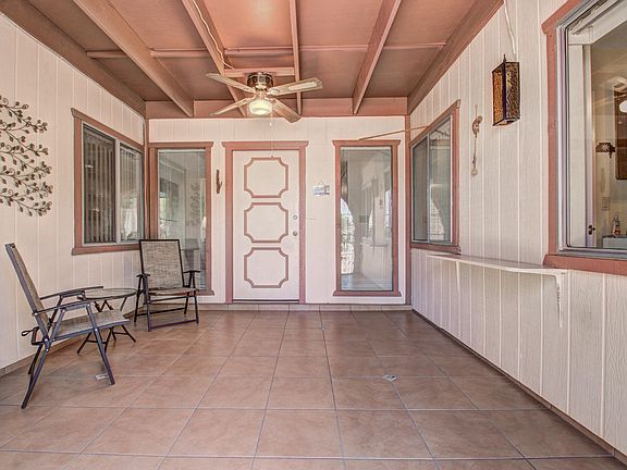 This impeccable house is waiting for you! Enjoy the gorgeous mountain views from the roof observation deck or lounge in the huge ''Arizona room'' which runs the full length of the house. The totally updated kitchen boasts granite counter tops, new cabinets, lower and upper, a double basin sink and a very tasteful back-splash. Two guest bedrooms provide plenty of room for guests or use one for a den/office. Separate storage room could be used as a workshop. Mature desert landscaping with fruit trees. Furnishings, linens, and fully equipped kitchen are included, so this home is move in ready. This property is not currently a member of GVR but available. However, this community offers its residents a swimming pool, hot tub, pickleball courts, tennis court, shuffleboard, pool table, artist