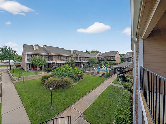 Charming condominium located in the heart of South Tyler. Nestled with a view of the community pool on the interior of the complex. Open living and dining room with wide galley kitchen. Stainless steel appliances, granite counter tops and dark wood cabinetry. Refrigerator, washer and dryer convey. Mock brick fireplace highlights the living room. Sliding doors from the dining room lead on to the balcony overlooking the pool. Vinyl plank flooring in the living areas. Tile in the bathrooms and plush carpet in the bedrooms. Blinds throughout. Two spacious bedrooms with walk in closets, two well appointed bathrooms, and a reserved, covered parking space. Double sinks in granite vanity with separated tile tub/shower and water closet. This is a must see!