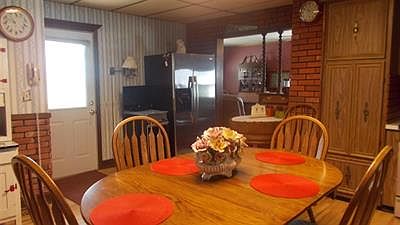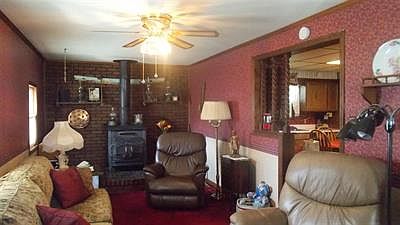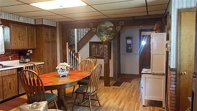 Charming country house on nearly two acres. Apple orchard, grape vines, open field for playing or gardens, ample parking spaces and a detached garage with workshop. Second garage is attached to main garage. Roof shingles may be asbestos, extra shingle tiles stacked in workshop. Wrought iron storm doors on front and back doors. New insulated exterior door w/leaded glass. Pella windows with blinds between glass in family room, kitchen and bath. Newer insulated Low-E windows in remaining rooms. Full bath has claw foot tub, heat lamps, separate corner shower, double vanity sinks and tile floor. Kitchen is spacious with room for a large table and ample cabinetry with two pantries. The kitchen is truly the heart of this home. Family room is cozy and comfortable, with a wood burning stove on a brick hearth. Formal living room has a raised ceiling with built in cabinetry, including a gun rack. Antique fireplace, crown molding and decorative ceiling with a chandelier. Master bedroom has a full wall of three separate closets. Sweet side covered porch has a porch swing and railing at the side door, facing the side yard. This home is a must see if you're looking for a little slice of nostalgia like "Little House on the Prairie". Property is located in eligible ares for USDA Rural Development assistance.