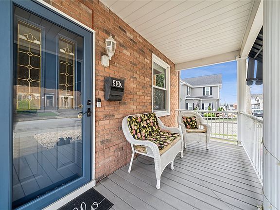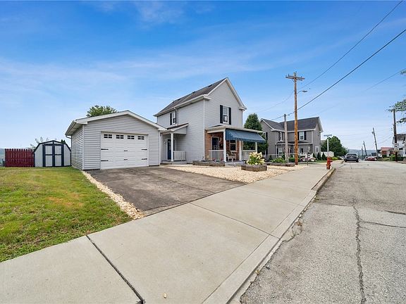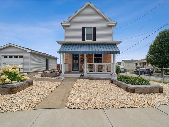 Move in ready 2 bedroom dollhouse with a level entry. Large eat-in-kitchen with a double bowl sink, new flooring and newer stainless steel appliances. Diningroom with large closet could be used as 3rd bedroom. New full bath features a walk in shower, new vanity and heated towel rack. Newer exterior doors. The large detached garage measures (9' wide x 7' high x 23' long) is steps away from kitchen door. 8x10 storage shed in the rear. Master bedroom has 3 closets, including a walk- in measuring 5x5. Many windows have been replaced. The custom radiator covers add to the modern decor. Front and side porches have a composite floor. A/C is 6 years old. Very clean and well maintained home. Low maintenance exterior. Additional toilet in the basement level. Ring doorbell is included.