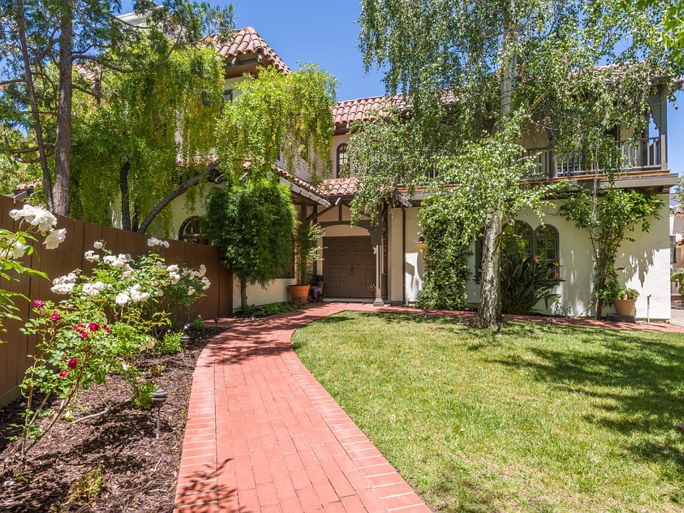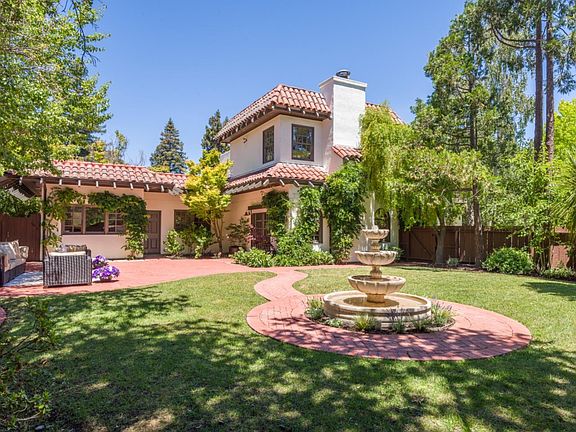 FIRST OPEN HOUSE Saturday and Sunday 1-4. Stately and stunning Mediterranean home located near downtown Burlingame Ave, parks, transportation. Gated large lot with lovely gardens, patios, fountain, and al fresco dining areas. Grand 2 story entrance with skylights for natural light. 3800 sq feet of well thought out living spaces, updated by current owner with high quality stainless steel appliances, a master bath sauna, 2 fireplaces in master suite and living room. Along with 3 upstairs large bedrooms all with their own baths, there is a 4th bedroom suite located on the main floor with its own entrance and a lovely view to the courtyard and fountain. In addition, there are double pantry closets in the kitchen, a 3 car garage with lots of parking, a charming traditional balcony off the master suite overlooking the birch trees in the front garden.