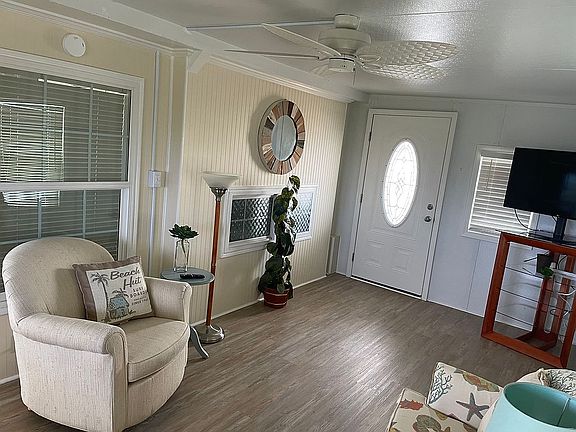 Looking for a beach retreat? Live easy enjoying the salt life in this first row affordable waterfront home with unobstructed panoramic water views in a gated community less than 15 minutes from the beach at Emerald Isle with amenities such as marina, pool, basketball and volleyball courts, weekend entertainment, community planned recreation activities and more! Pictures don’t do the views justice from this tiny home located in desirable Carteret County with custom features such as a full room addition, deckboard base trim, two porches- one brand new fully screened/ one open, roller sun shades, gas line run directly for grill hookup, storage building w/ built in wooden shelving and extra full size fridge, and more! Spacious parking for two cars or a boat and a vehicle. The marina to hop on your boat and go is within view and walking distance! Pool and courts within walking or less than 5 min golf cart ride. Has two bedrooms- actual rooms not just a loft- and one full bath. Situated on a leased lot- $5640 annually including water, cable and lawn care. Visit White Oak Shores website for additional community information. There are full time residents in the community. Motivated seller due to permanent relocation. Short term Airbnb rentals are not permitted.