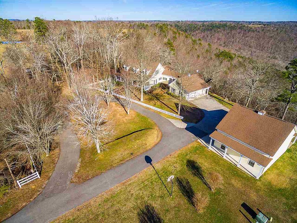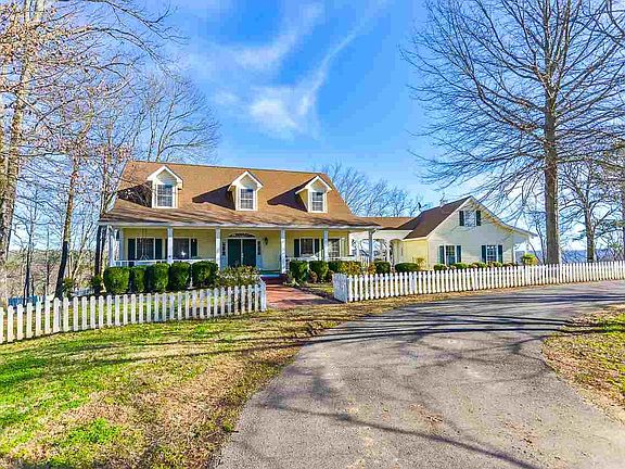 Relax on your back porch & watch the sunrise from your private bluff view with the waterfall just steps away. Boasting 10ft ceilings throughout the main floor, the kitchen has granite counter tops, lots of cabinets and large pantry. The living room has custom built-ins & gas log fp. The master suite features hw floors with his/hers closets. Master bath with double vanity, claw foot tub & tiled shower. Upstairs are 2 large bedrooms with walk-in closets & loft area. Above the 2 car garage is a finished 16x32 bonus room. There's also an additional unfinished storage building with a two car bay area measuring 28x48, suitable for RV parking with a 28x32 unfinished overhead for additional storage