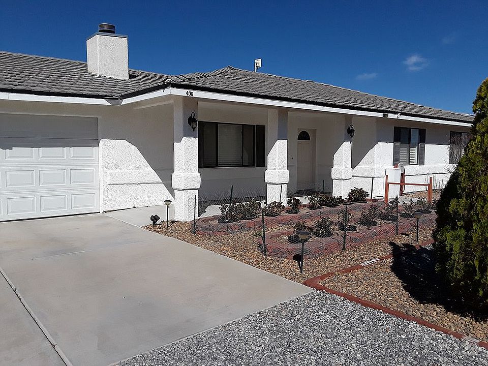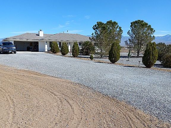 This a Beautiful 3 bedroom, 2 full baths, single story home of about 1,634 sq.ft. It is 1.16 acre and is located on a dead-end street in Southern Pahrump, 54 miles NW of Las Vegas. This is being sold by Jim & Carroll, owners. We can be reached at 775-253-9760 or alwaysmusic1213@yahoo.com. *There is a Stunning kitchen with newer cabinets and heavy countertops. There are matching appliances and a laundry room with newer Washer & Dryer. The laundry room leads to a large walk in pantry/storage room. *The open style kitchen, eating area, & living room with sliding glass door leads to the 11ft x 32ft covered patio. A great space for BBQing and enjoying the 4 person hot tub. *The large master bedroom has two large mirrored closets with a full bathroom. The two other bedrooms are good sized with family bathroom at the end of the hall. *Outside, the yard is totally landscaped with gravel cover and over seventy irrigated trees and bushes including two rose gardens. *The outer property line is completely fenced with 5 foot chain link. In the rear of the house is a small fenced area for kids or pets that is about 35ft. x 65ft. *There are two sheds at the rear of the property. One is for the well and tractor storage. The other is for general storage and has shelving. Monthly Expenses for 400 Wilber Way Taxes on house $ 94.50 Taxes on lot $ 15.30 Power - heating & lights $209.00 Garbage Disposal $ 18.30 Water - Free, private well Sewer - Septic Field There is an adjacent lot at 430 Wilber Way that is being sold as well. The house and lot are deeded separately and sold separately. The lot is also 1.16 acres, cleared, fenced, capped well, and power. The lot is selling for $53,000