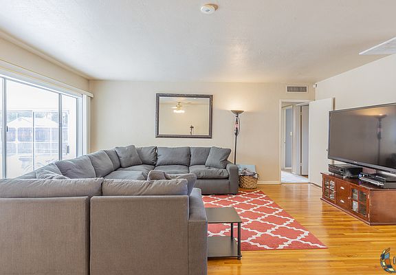 Here is an excellent opportunity to own a large single story in West Brawley! This 3 bedroom home offers 1,838 sq ft of living space and sits on an 8,000 sq ft lot! As you enter the home you will find that the floor plan is open to the living room and the bonus room/ bar area. The living room and bedrooms offers original hardwood flooring which has been kept in great shape. You will notice that the kitchen has been fully renovated with laminate flooring, all white cabinetry, including all new countertops! Making your way to the bedrooms, you will find that the rooms are all spacious. As you continue through the living room, you will find the bonus room/ bar area which offers plumbing for a wet bar. The home also has a sunroom which is attached to the bonus room. With the home sitting on an 8,000 sq ft lot, this large home still offers plenty of yard space out back for the family get togethers! Additionally, the home offers a laundry area and 2nd bathroom just off of the kitchen.