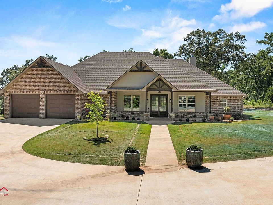 STUNNING property that is a MUST-SEE! This custom-built home situated on a sprawling 6.142-acre lot features, 4 bedrooms, 3 bathrooms, 2-car garage, private office and an expansive 2400 sq ft shop w/3 bays. This property exudes elegance and natural beauty at every turn. The beautiful kitchen includes a large island with seating, granite countertops, stainless-steel appliances and a walk-in pantry. The primary bedroom boasts direct patio access, an en-suite bathroom with a large soaker tub, separate vanities, and a spacious walk-in closet. The open floor plan provides a seamless flow throughout the home that showcases the beauty of deep wood and brick accents. This property is perfect for those seeking a combination of comfort and style. Schedule a showing today to experience the impeccable craftsmanship of this exceptional home, this gem will not last long.