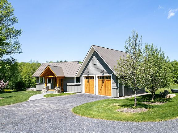 Enjoy Vermont living in this pristine custom-built home. Set atop a hillside on 23 acres of privacy in Northfield, VT. With long-range mountain views, you will enjoy the changing landscape. Northfield is the home of Norwich University and is in close proximity to the best skiing Vermont has to offer, Sugarbush and Stowe Mountain Resort. The craftsmanship of this newly built home shows in every detail, from the custom cabinetry to the thought that went into every space. The kitchen is a chef's delight with stunning custom cabinets, Wolf appliances, expansive granite counters and a breathtaking view of the mountain range. The layout of the home is open and filled with daylight. Enjoy entertaining in the expansive living room with the gorgeous fieldstone wood burning fireplace. Three screened porches allow you to choose your favorite spot to relax with morning coffee. Two primary suites with spa-like baths and dressing rooms with custom cabinetry create a tranquil oasis. A third bedroom or yoga/meditation space is ideal. The lower level has a state-of-the-art movie room, office and craft room. Another bedroom suite with walkout access to the lower patio. The finished and heated barn boasts two car lifts for specialty car or boat storage as well as RV space and tractor space. Attend sporting events at Norwich and enjoy the pageantry of a military school event. Play golf at the local course or take a trip to nearby Burlington, Lake Champlain or Montreal just 2 hours away.