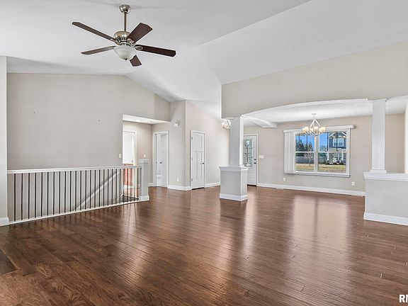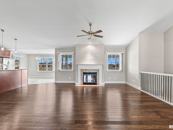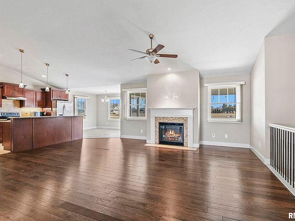 Stunning residence boasting lovely curb appeal. Enter through the welcoming covered front porch into a spacious foyer. You'll love the open floor plan featuring wide plank hardwood flooring. The kitchen is complete with a center island, stylish drop pendant lighting, granite countertops, a tasteful backsplash, and stainless-steel appliances. Enjoy formal dining in a sophisticated setting. You'll appreciate the split bedroom design, highlighting a generously sized master suite with an elegant bathroom and a walk-in closet. Convenience meets style with main floor laundry and a built-in drop zone. The lower level is a haven for relaxation, featuring a well-appointed rec room, a fourth bedroom, and an additional bathroom. Step outside to the covered patio and appreciate the surroundings from this tasteful retreat. The property includes a 3.5-car garage, adding practicality to its list of charms. 5th Bedrooms potential ~ already framed with egress window!