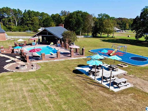 5 BR, 6 bath, full brick, executive home inside Albertville City. Brick, columned, covered front porch. Pool, 2 story pool house with full bath, sauna and game room, poured rubber ADA approved lighted playground, custom firepit, large covered deck with built in seating. 2 car garage with extra roll up bay for lawn equipment, 2 car detached garage with upstairs and downstairs living space, pool house and detached garage have their own HVAC. Homeschool/Virtual Classroom. Painted murals in the bedrooms and theater room are a must see! Theater room has kitchenette and bathroom. Roof and all 7 HVAC units were replaced in 2015. Please review all realtor notes.