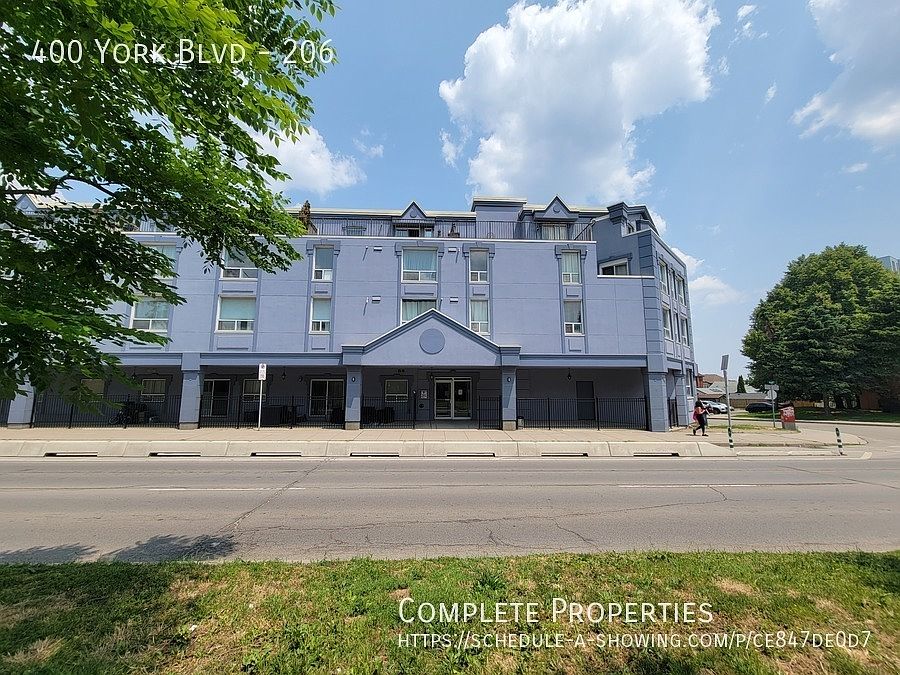 Welcome to the charming 2 bedroom 1 bath unit at 400 York Blvd! Spacious open layout In-suite laundry Secured front door voice intercom for added peace of mind full piece bath Enjoy the convenience of underground parking $1995+ Hydro and gas