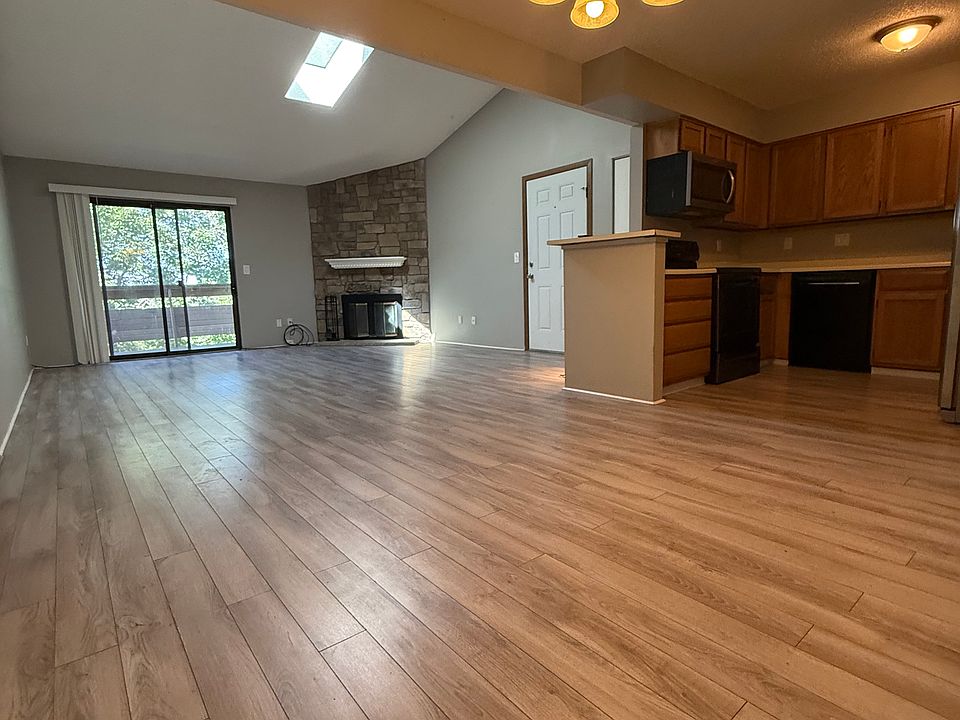 This large condominium is privately owned and sits on a hill above Union Ridge park. This unit features lofted ceilings, hard wood floors and an open floor plan which gives it a light, airy feel. Enjoy your coffee on the large 3rd floor deck and warm up next to the natural wood burning fireplace on cold Colorado nights. This unit has spacious bedrooms with an ample master bedroom. The walk-in closet is massive with the master bath en suite. The kitchen has recently upgraded appliances with an oversized refrigerator. Laundry is no problem with a dedicated laundry room with new washer/dryer included. Other amenities are: pool, tennis courts and 2 dedicated parking spots. Location is prime with a 15 min drive to downtown, 1/4 mile from the light rail station and mountains right at your front door! Shopping and dining options are too numerous to list with Colorado Mills a stone's throw away. Deposit of one month's rent, first month's rent and credit/background check required for move in. Mid-month move-in will be prorated. No smoking in unit. Small dog ok. No cats. Pet deposit of $100 required and $35 a month pet fee. Tenant pays for gas and electric. No smoking in unit. One small dog ok (less than 50 lbs), 2 dedicated parking spots, electric grills only on deck (fire code). Early lease termination is 2 months rent unless otherwise negotiated.