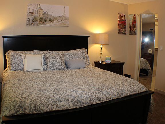 - Exterior features: Fully furnished, all linens appliances, pots and pans and utensils, Walk In Closet, open space setting, private second floor location, reserved parking