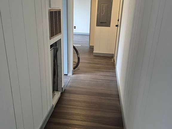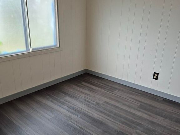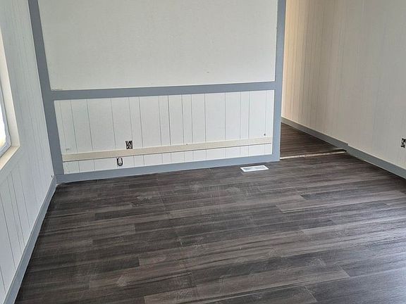 Dark gray laminate floorsOne car carportNew white quartz countersStorage shed in carport