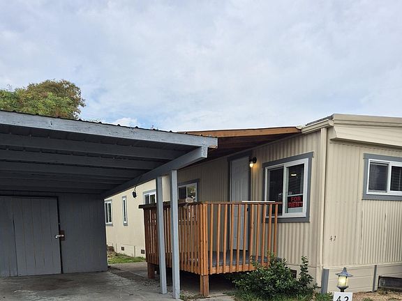 This is a Senior Park. Residents must 55 years old and older. Re-modeled 1975 Sun Valley Model. Mobile Home. In Senior Park. One tenant must be 55 years or older. 2 bedrooms. 540 square feet. One bedroom is very small. Dark gray laminate floors throughout. Galley kitchen features new white quartz counters. Back door and porch and steps. One car carport and 2nd parking in driveway for small vehicle. Storage shed in carport. Small front and back yard. Stacked washer/dryer.