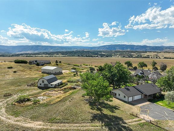 Nestled on 5 acres of breathtaking land, this 3-bedroom, 2-bathroom home offers 1,710 finished square feet with an additional 1,710 square feet of potential in the unfinished basement. The property is a true equestrian's dream, featuring a large barn ideal for housing horses or other livestock. The expansive land provides ample space for outdoor activities, gardening, or simply soaking in the stunning natural surroundings. Whether you're looking to create a custom retreat or simply appreciate the charm of a country home, 4000 Bear Canyon is a unique opportunity to own a piece of Sedalia's scenic beauty. Located just 25 minutes to Highlands Ranch and 13 minutes to Castle Rock, this property provides a quiet and serene setting while being conveninet to all the amenities you need.