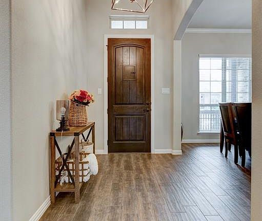 WOW - $5000 OFFERED TOWARDS BUYER'S CLOSING COSTS & FRIDGE WITH FULL PRICE OFFER! You will love this newly built home with glamorous finishes! Upgrades include wood look tile throughout (no carpet), crown molding, custom light fixtures, recessed lights, exotic granite in the kitchen and all baths. Flex room at the front could suit many different floor plan needs. Enjoy cooking in this amazing island kitchen with glass tile backsplash, stainless steel appliances & an abundance of cabinetry. Eat-in breakfast area has built-in shelving & granite top. Relax in your master retreat featuring window seat & luxurious bath with dual sinks, jetted tub & separate shower. Large front & rear covered porches with gas stub.
