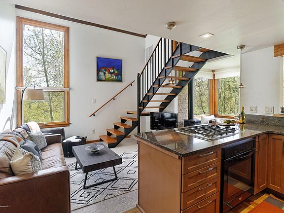 Fabulous mountain contemporary design has an ideal location in Snowmass Village. This premier 2 bedroom, 2 bathroom townhome has everything you could want for your vacation. The unit features open living spaces with wood flooring throughout, an efficient kitchen with marble countertops, a gas stove next to a comfy day bed; an ideal spot for reading a good book or an afternoon nap. There is seating for four at the table, and a small walk out deck with a BBQ that leads to the complex pool, hot tub and a grassy back yard with Snowmass Creek running right through it. The upstairs has a single bedroom, contemporary bathroom with shower and lofted office space with a day bed and work desk.The second bedroom is located on the main living level with a bathroom, washer/dryer and great views towards the Snowmass Ski Area. All in all this unit is light, bright, clean and contemporary. The complex is pet friendly and conveniently located on a free shuttle route.TOSV STR Permit #: 041278 The second bedroom is located on the main living level with a bathroom, washer/dryer and great views towards the Snowmass Ski Area. All in all this unit is light, bright, clean and contemporary. The complex is pet friendly and conveniently located on a free shuttle route.