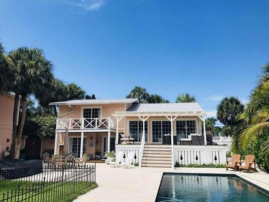 Casey Key bayfront cottage and guest house with private beach. The home has been featured in several national publications. Beautifully decorated with a fun coastal vibe. Light, bright and perfectly adapted for a beach getaway. Walk thirty steps to your own private beach and enjoy the Gulf of Mexico. Inside the house sliding glass doors open up to a fabulous deck and 40 foot lap pool. Wonderfully appointed guest cottage apartment with kitchen and bath. Both main home and guest cottage enjoy expansive views of the bay with abundant wildlife and passing boats at a distance. Large boat dock with water and power with a 10K boat lift. Sit back on the dock and enjoy the view within a beautifully manicured mangrove canopy on the bay. Both the main home and guest apartment have hurricane/impact windows and an automatic back up generator with a 500 gallon buried propane tankin the event of power loss. house has tankless water heater and has been re plumbed with pvc. Available Mid August- Mid November 2021