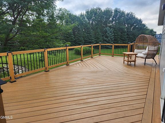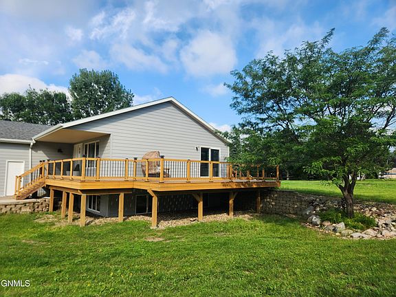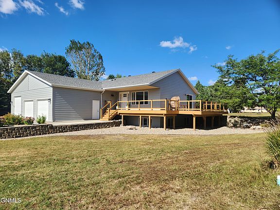 Exquisite, remodeled ranch home on 2 acres in Rural NE Bismarck. Welcome to this stunning ranch-style home almost 3000 sq ft. originally built in 2000 and beautifully remodeled over the past 6 years. Nestled on just over 2 acres in a private cul-de-sac in rural NE Bismarck, this residence combines modern luxury with the tranquility of country living. The home features a grand entryway and an exceptional layout. The chef's kitchen is a highlight, showcasing a pristine white design with a magnificent island and waterfall peninsula. It's equipped with two dishwashers, a 6-burner stove with a pot filler, a double oven, and a large sink, complemented by an appliance garage for added convenience. A mudroom between the garage and entry makes for a great place to drop all your shoes, bags and coats. A custom-built-in storage unit with hooks, shoe shelves, cubbies and a huge adjustable pegboard keeps you organized and everything in its place. The property includes 4 spacious bedrooms and a versatile non-conforming room, ideal as an office or nursery, with the option to add a window if desired. The main floor boasts a secondary primary bedroom with a luxurious ensuite, while the remaining bedroom are located downstairs in a well-lit half basement. The primary bathroom offers a double shower, a double vanity, and a separate water closet. The primary bedroom features a large walk-in closet with built-ins for ample storage. Downstairs, you'll find two additional generously sized bedrooms with great closet space, a well-appointed laundry room with shelving and a folding table, and a washer and dryer that will remain with the home. The property is surrounded by a mature shelter belt of pines and lilacs, providing privacy and a serene environment. Mature landscaping adorns the grounds with more landscaping planned. Enjoy the bounty of two apple trees that are great producers. A small shed in the back offers additional storage. Triple garage has 3 separate overhead doors and is insulated. Long bays, 3rd bay is extended and has a tall door for a recreation vehicle to park indoors. There is a dog door and kennel attached for ease of pet care. A new huge deck finished this summer has ample space for a large table and comfortable seating for all of your family parties. With ample space on the property, there is plenty of room for a shop of additional outbuildings to suit your needs. Large windows throughout the home ensure plenty of natural light, and the included snow blower, lawn mower, lawn sweep, pull-behind sprayer, and various yard care tools mean you'll be fully equipped to maintain your new home and its expansive grounds from day one. Don't miss this opportunity to own a beautifully updated home in a peaceful rural setting!