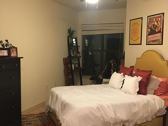 Building has a pool, gym, lounge and business center. Apartment has a big balcony, washer dryer, walk in closet, massive well equipped kitchen, garden style deep bathtub, and is elegantly furnished throughout. Rent is $1490 (+utilities), managed contractually through the apartment building so its all above board. Contact me with any questions or to come see the place!! Pets allowed, parking garage, utilities reasonable, very responsive and helpful building management that immediately response to issues or requests.