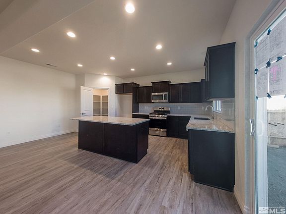 PLEASE NOTE: Home images may represent samples of ongoing construction or other completed homes. These Images are virtual staged. Welcome to this exquisite 1-story new build home, completed in 2024, offering a perfect blend of modern luxury and functional design., With 4 spacious bedrooms and 3 beautifully appointed bathrooms, this 2,291sqft residence is ideal for entertaining and comfortable living. Step inside to discover luxury vinyl plank flooring throughout all living areas, providing a stylish and durable foundation.The interior is painted in a chic eggshell finish, making cleaning a breeze and allowing you to enjoy a fresh, bright atmosphere. The heart of the home, the kitchen, is a chef's delight, featuring stunning espresso cabinetry, a spacious island, elegant granite countertops, and top-of-the-line stainless steel GE appliances complemented by a tasteful tile backsplash. The adjoining laundry room includes cabinetry for added convenience. Venture down the hall to find additional bedrooms bathed in natural light, each adorned with brand new carpet and upgraded padding for extra comfort. The primary suite is a true retreat, boasting a generous walk-in closet, dual sinks, and a luxurious tile walk-in shower with glass doors, creating a spa-like experience at home. Step outside to enjoy breathtaking mountain views and mesmerizing Nevada sunsets. The expansive yard is a blank canvas, ready for you to bring your landscaping dreams to life. The 3-car garage is perfect for all your toys, equipped with an insulated door, belt-driven opener, and battery backup for peace of mind. Located near Cold Springs, enjoy easy access to BLM land and walking trails, making it a paradise for outdoor enthusiasts. Don’t miss the opportunity to make this beautiful home yours—schedule a tour today!