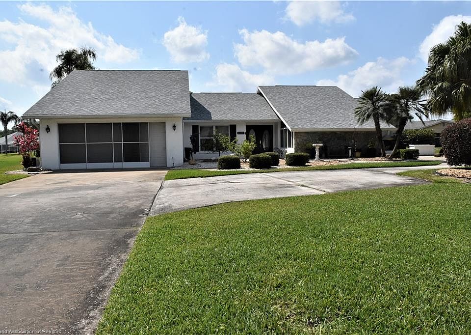 Location, Location! This one has it all! 3 Bedrooms, 2 Baths, 2 Car Garage + golf cart garage, caged pool & has a great view of the lake. Don't delay on seeing this home! Tile flooring, cathedral ceilings, updated kitchen w/ granite counter tops, updated Master bath & so much more. This is a very light & bright home and offers an open split bedroom floor plan with cathedral ceilings in the Living, Dining & Kitchen. The rear porch is enclosed and used as a family room & part of it is used as a bonus room/closet area off the master bedroom. The front guest bedroom is currently being used as an office but does have a closet. There is also an enclosed porch to the front that is an ideal spot for for reading your favorite book. There is access from the guest bath that goes directly into the attached golf cart garage/workshop. The Master bedroom features vaulted ceiling, tile flooring, walk-in space saver closet & updated bath with newer tile flooring, vanities & tiled shower. There is also water lines available for a tub if desired. You are going to love the kitchen as it features updated cabinets, granite counter tops & stainless appliances. The a/c system has a 3 zone system & the pool pump has a variable speed. Come and check out this great pool home before it is gone! Just in time for summer fun in your own pool! Golf cart distance to the club and golf course too! This one won't last long!