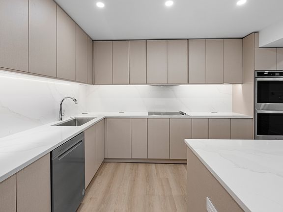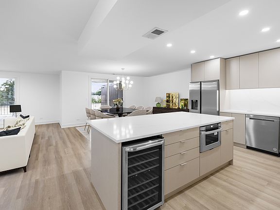 Absolute showstopping, magazine quality renovation! 2100+ sq ft floorplan has been reconfigured for pure luxury modern living. Phenomenal, open concept chef's kitchen features quartz countertops and backsplash, wine cooler, double oven, brand new stainless appliances, tons of countertop and storage space, and huge island with seating. Dining room features beautiful chandelier centerpiece, plus space for a 10+ seat dining table. Extra large living room is perfect for entertaining. Enjoy your own oversized private terrace, with enough sun for gardening! Separate family room or potential 3rd bedroom. Stunning primary bath features heated floors, surrounding tile, floating dual vanity with undermount nightlight, extra large shower, freestanding tub, and linen closet. Oversized primary walk in closet! Generously sized second bedroom with dual closets. Second bath features floating vanity with undermount nightlight and gorgeous tile. 2 garage parking spaces, and separate storage are included! No in-unit laundry, but laundry room in building on 1st floor. Clubhouse features indoor pool and party room. Short drive to great restaurants, shopping and highway!