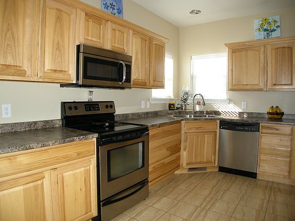 Beautiful 3 bedroom 2 bath with vaulted ceilings, stainless steel appliances, new carpet and tile throughout. Split bedroom design with master suite, 5 piece bath, jetted tub and custom walk-in closet! Hand crafted extra-large patio and extended drive way with river rock edging and picket fenced back yard. Basement is framed and waiting buyer’s final touches. Close to Rec Center and Fishing Lake!