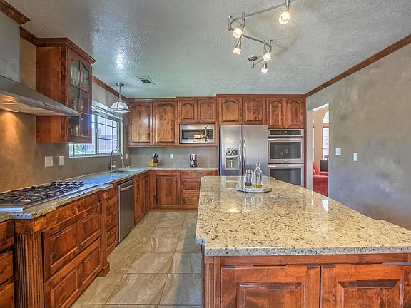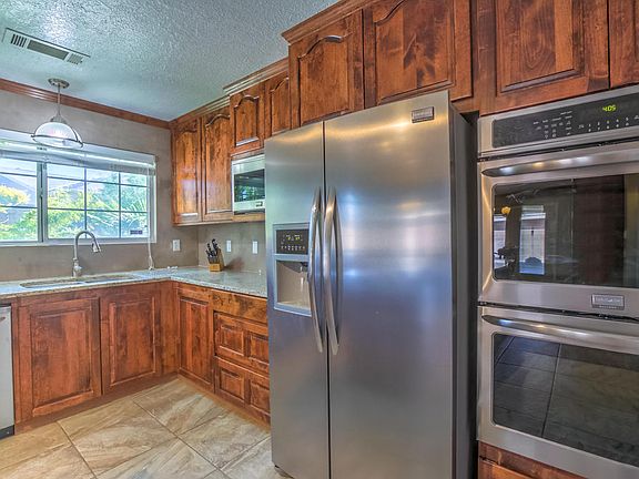 Just in time for summer fun!! This beautiful 3 bedroom home has tons of updates throughout. Brand new gourmet kitchen complete with custom cabinetry, stainless steel appliances, textured porcelain tile, granite counter tops, and crown molding. New flooring throughout with fresh paint. Refrigerated air. Large heated, self-cleaning pool with waterfall hot tub feature. Huge lot with mature, beautiful landscaping, new sod, and RV gate. This house was made for entertaining!