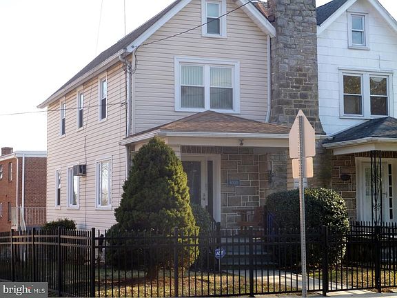 Welcome to this beautifully maintained home! Enter through the wrought iron fenced yard and step up onto the covered front porch- a perfect spot to relax on those summer days- that are coming soon! The spacious living room has a beautiful stone gas fireplace, crown moldings, ceiling fan and gleaming hardwood flooring throughout the home. Enjoy your meals in the large dining room which also has a ceiling fan or in the great eat-in kitchen that has a dishwasher, an abundance of cabinetry and an outside exit to the back deck. The second floor offers; a large master bedroom with two closets & CF, two additional bedrooms each with ceiling fans and an updated hall bath with a unique walk-in tub/shower & pedestal sink. The living space continues into the nicely finished basement which has outside access and a separate utility/laundry area. Other amenities include; a finished walk-up attic for storage or add heat for a 4th bedroom, built-in A/C unit in the dining room, off street parking for 2 cars, an attached storage shed, a newer 2011 shingled roof, tilt-in windows, 150 Amp electric, low maintenance vinyl siding and it is conveniently located near public transportation, schools and shopping. Also included are the washer, dryer, refrigerator, 1 A/C window unit, window treatments- all AS IS + a One Year HSA home warranty!