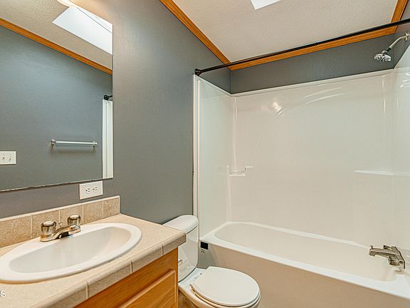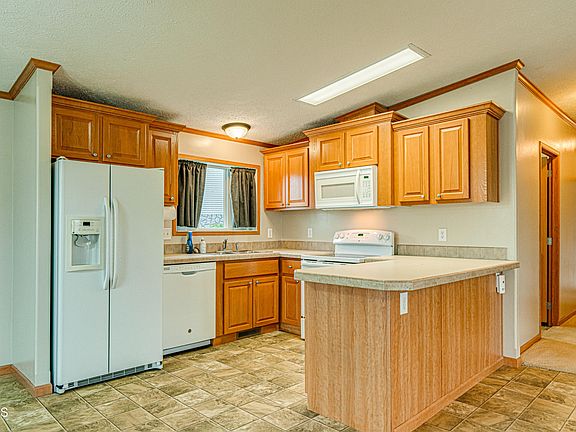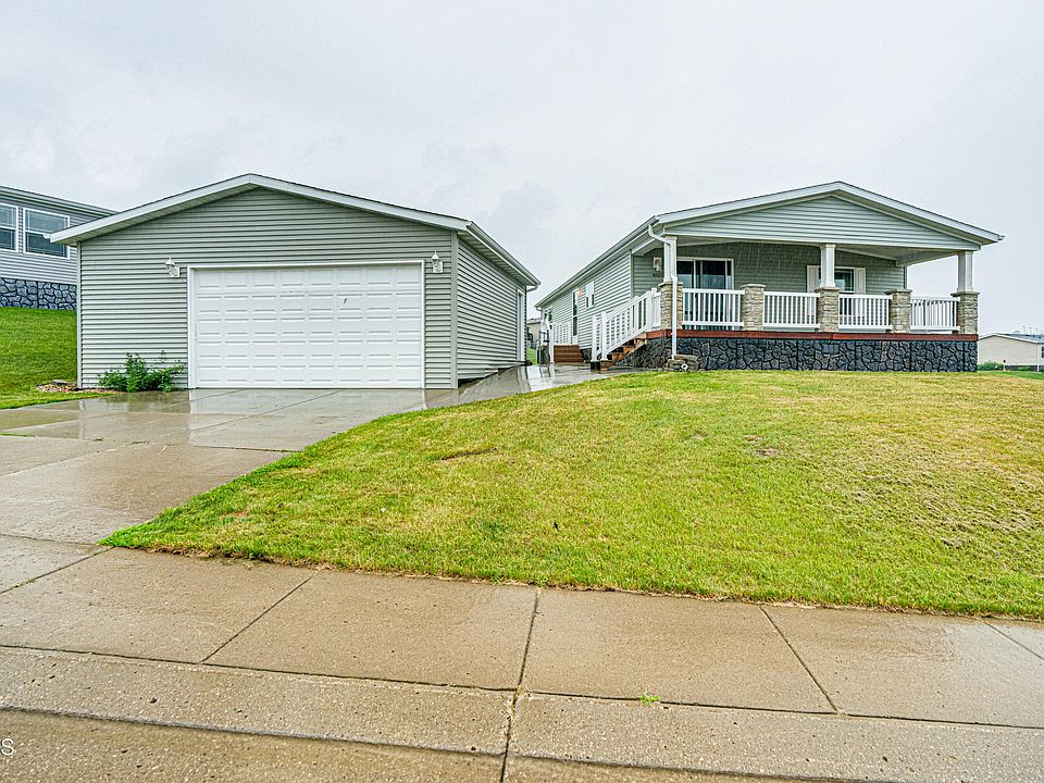 Get ready to enjoy the beautiful summer days on this front covered porch! Welcome to a spacious and well maintained 3 bdrm, 2 bath home that's ready for it's new owners. Enjoy the bright kitchen/dining room with patio doors that lead to the covered porch at the front of the home. The laundry room features storage cabinets and closet as you enter from the detached garage. As you head down the hall to the bedrooms, you will appreciate the spacious primary bedroom with a large walk in closet. The attached primary bathroom has a skylight to let in extra light and double sinks with a corner tub and separate stand up shower. The other bedrooms across the hall are good sized with one of them having a large walk in closet as well. Outside you will find a fenced in yard and an oversized double detached garage that offers some shelving and room to store the extras! Call your favorite realtor today for a showing!