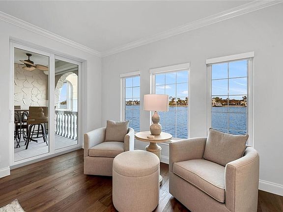 PET FRIENDLY COMMUNITY WEST OF 41 - LARGE DOGS WELCOME! Nestled on its own private island, Venetian Villas stand as one of Naples' most distinguished gated communities. Built by the renowned Lutgert Companies, the development draws inspiration from the timeless elegance of Venice, Italy. This exceptional first-floor condo, featuring 2 bedrooms and 2 full bathrooms, is quietly situated within the coveted Park Shore neighborhood, offering unparalleled privacy and serene bay views. Residents of Venetian Villas enjoy exclusive access to Park Shore’s deeded beach, just across the street, as well as a short stroll to the vibrant dining, shopping, and cultural experiences of Venetian Village. The community also boasts a wealth of amenities, including a pristine pool overlooking Venetian Bay, garages, optional boat slip leasing, and a year-round resident manager living on the property for added convenience. This condo has recently undergone a complete renovation by McGarvey Custom Homes, with no detail overlooked. Throughout the home, luxurious finishes and sophisticated design create a truly elevated living experience. The chef-inspired kitchen is a highlight, featuring Bosch stainless-steel appliances, custom cabinetry, quartz countertops, and a striking custom hood. An oversized pantry with double doors and a tucked-away wine fridge adds both functionality and elegance. The living area, with its sweeping bay views, offers a cozy fireplace, custom built-ins, and a warm, inviting ambiance. Naturally Aged European White Oak throughout. The master suite provides a peaceful retreat, complete with custom built-ins, a spacious layout that can accommodate a sitting area or office, and views of the bay. The spa-like primary bathroom is equally impressive, with Taj Mahal Leathered Quartzite Counters, a luxurious oversized shower with multiple showerheads, a Toto smart toilet, and two custom his-and-hers closets. The second bedroom also enjoys stunning bay views and includes a large custom closet and an ensuite bathroom with Bianco Vena Oro Counters. Currently used as a home office, this space offers built-in shelving and versatility for any lifestyle. Additional features include a brand-new South American Mahogany front door with glass, impact windows and doors, along with an electric shutter on the lanai. This is a rare opportunity to own a meticulously renovated home in one of Naples' most exclusive waterfront communities. Don't miss your chance to experience the ultimate in luxury living at Venetian Villas.